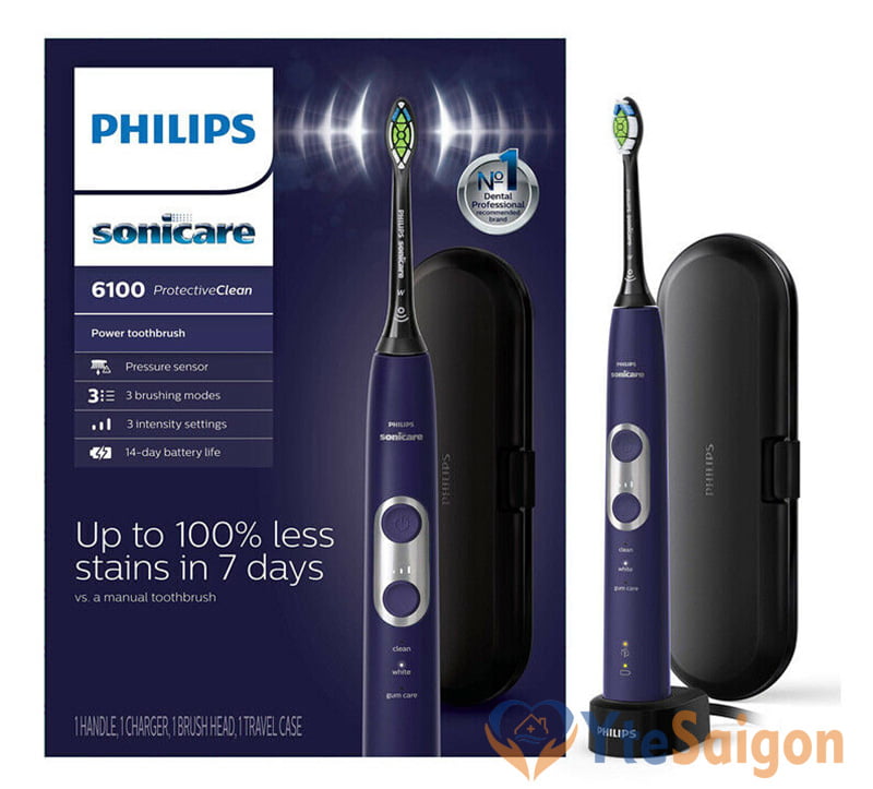 Bàn chải đánh răng điện Philips Sonicare 6100 là một trong những dòng sản phẩm mới nhất của hãng Philips. Máy được trang bị nhiều tính năng hiện đại, kèm với công nghệ Sonic giúp máy nhẹ nhàng loại bỏ các vết bẩn giữa những kẽ răng và dọc theo đường nướu. Sử dụng bàn chải điện Sonicare hàng ngày giúp răng trắng sáng tự nhiên và nướu khỏe mạnh.