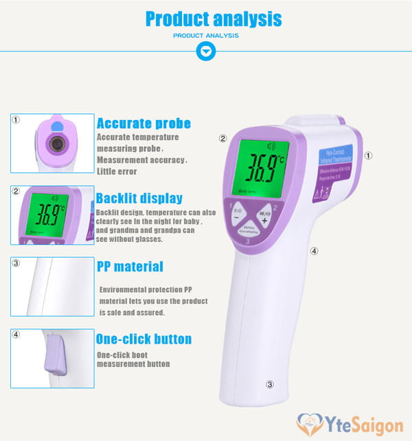 - Tích hợp 3 tính năng trong 1 gồm: đo thân nhiệt (qua lỗ tai hay trán), đo nhiệt độ phòng và nhiệt độ bình sữa.