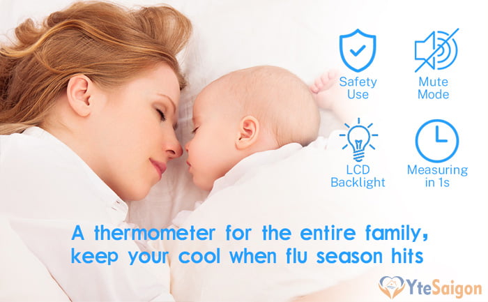 Hiển thị đèn nền LCD lớn & Chế độ tắt tiếng: Đèn nền và màn hình LCD có thể dễ dàng nhận được kết quả đo trong bóng tối và bạn cũng có thể tắt âm báo vào ban đêm, nó sẽ không đánh thức em bé ở chế độ tắt tiếng.