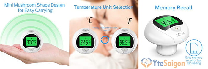 Nhiệt kế hồng ngoại đo cơ thể Misiki là dòng sản phẩm được yêu thích tại Mỹ. Nhiệt kế hồng ngoại này có 3 chế độ: đo trán, đi tai, và đo vật thể. Misiki được trang bị cảm biến có độ nhạy cao, bạn có thể đo nhiệt độ cơ thể một cách nhanh chóng và chính xác.
