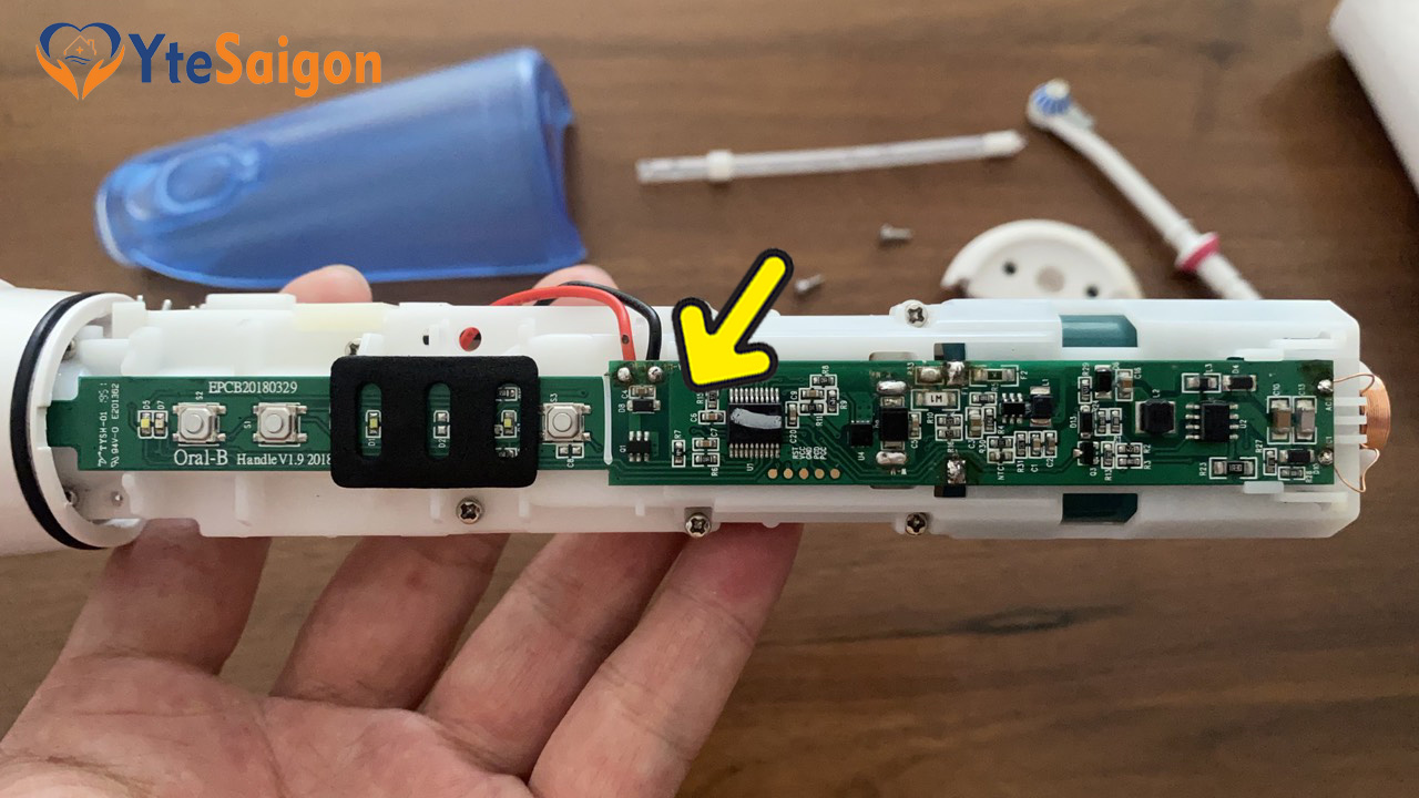 - Board mạch, tất nhiên rồi linh kiện này là đặc trưng cho từng dòng máy. Board của máy Oral-B có chất lượng rất tốt, thường sự cố ít xảy ra đối với linh kiện này. Tuy nhiên sự cố đã xảy ra với board mạch thì gần như chúng ta không sửa được.